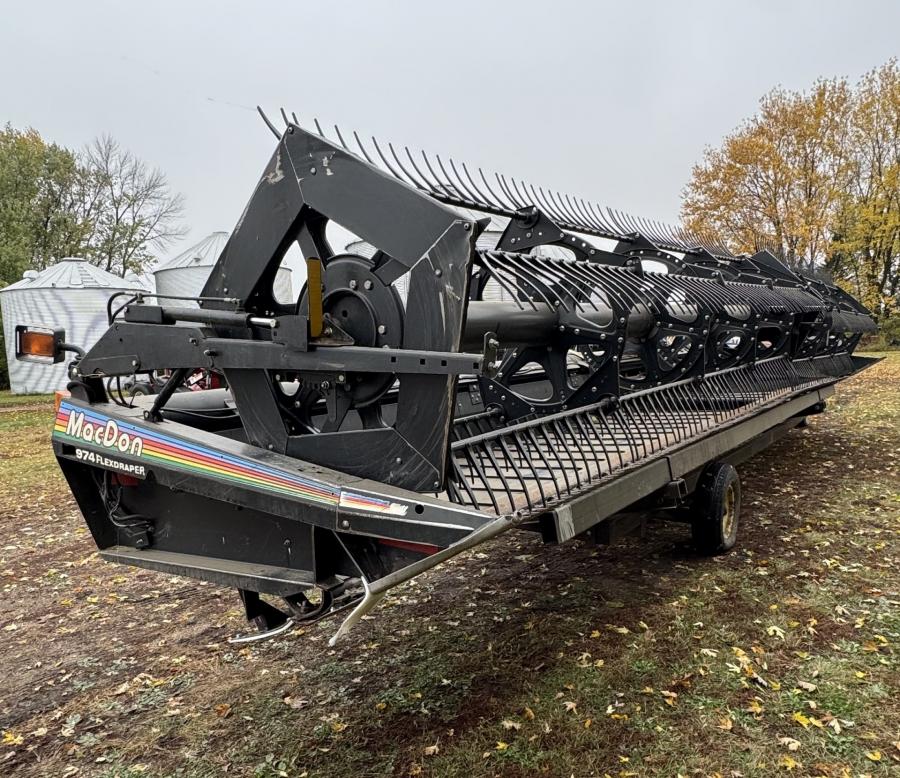 TRACTORS & HEADERS: Buhler Versatile 2160 Genesis II Tractor MFWD w/ approx. 6,869 hrs. 4 remote hyd. 14.9-46 rear duals, 380/85R30 front rubber, 22 front weights, International 856D Tractor w/ unknown hours, 2 remote hyd. w/ Miller loader & grapple bucket, 18.4-38 rear rubber, International Farmall 806D Tractor w/ unknown hours, cab, 2 remote hyd. newer Agri-trac 18.4-34 rear rubber, rock box, 2006 Mac Don 974 Flex Draper Bean Head 36’, fully fingered selling w/ Harvest Hand header trailer, Case 1020 Bean Head 30’ w/ AWS air reel, fully fingered, steel snoots, selling w/ homemade header trailer, Case IH 1083 Corn Head 8R30 w/ poly snoots